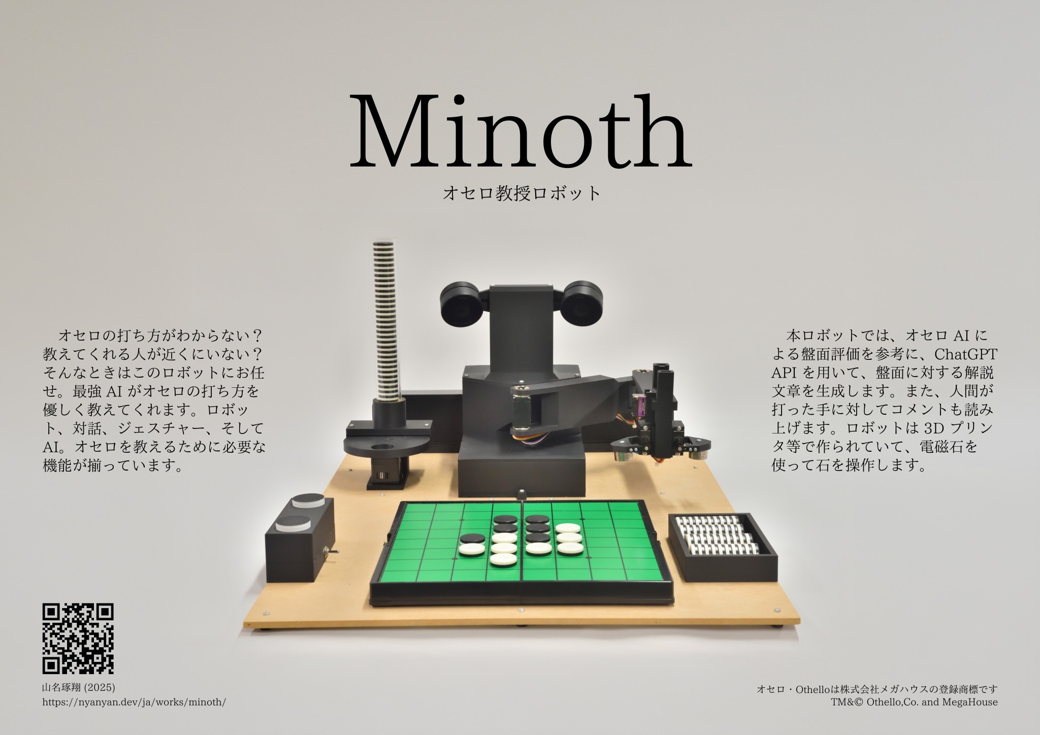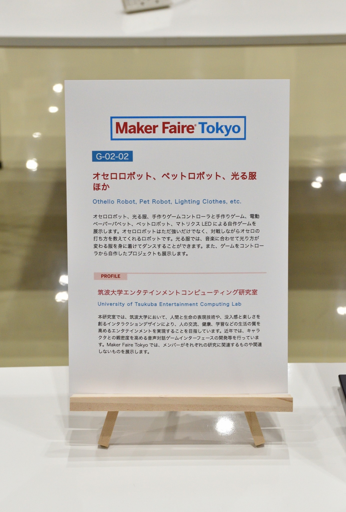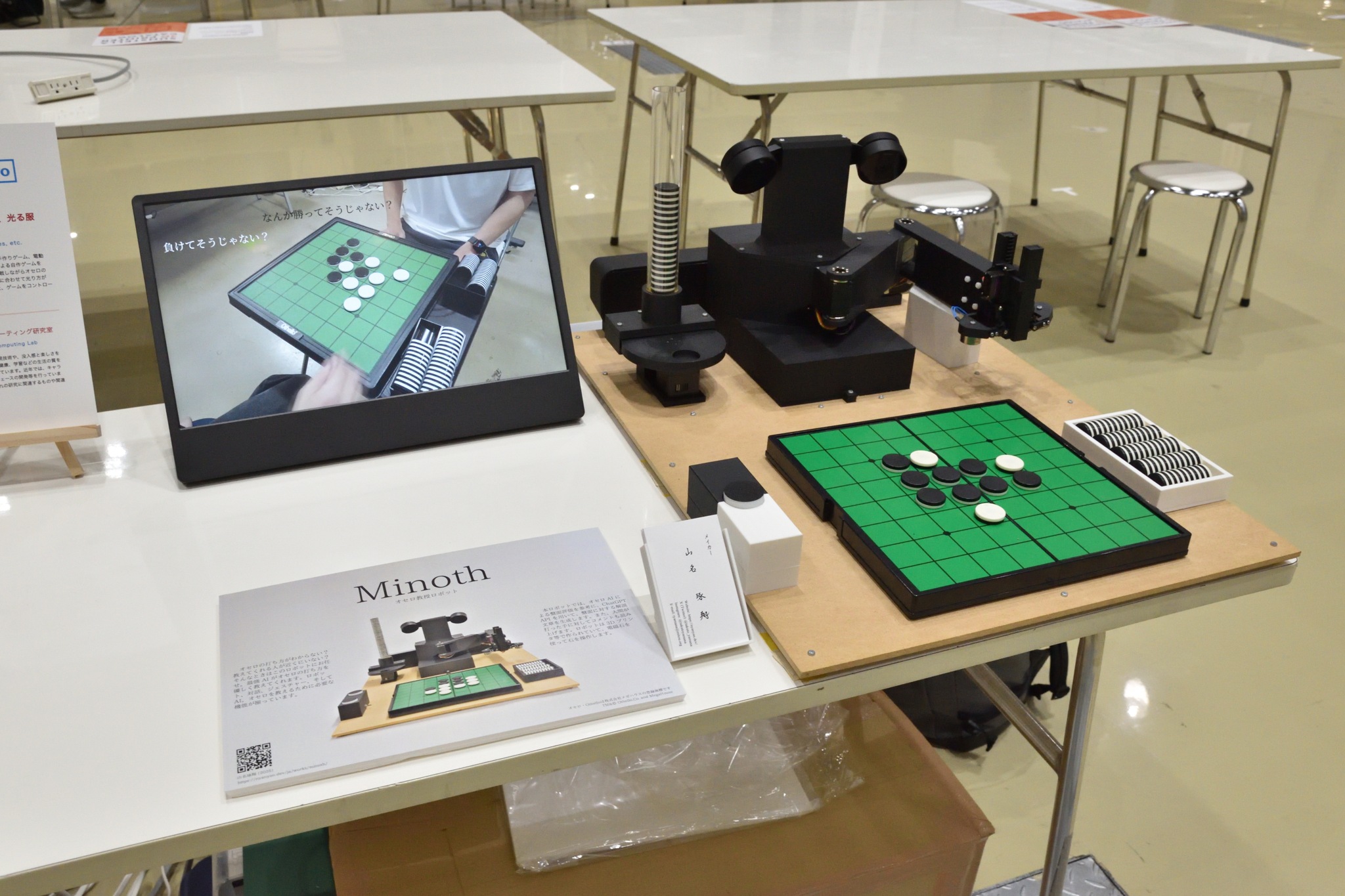 筑波大学エンタテインメントコンピューティング研究室として出展しました。私の出展物はオセロ教授ロボット "Minoth" です。